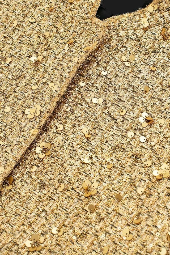 - Round Collared, Flap pockets, Gathered Hem, Metallic thread, and sequin appliques.
