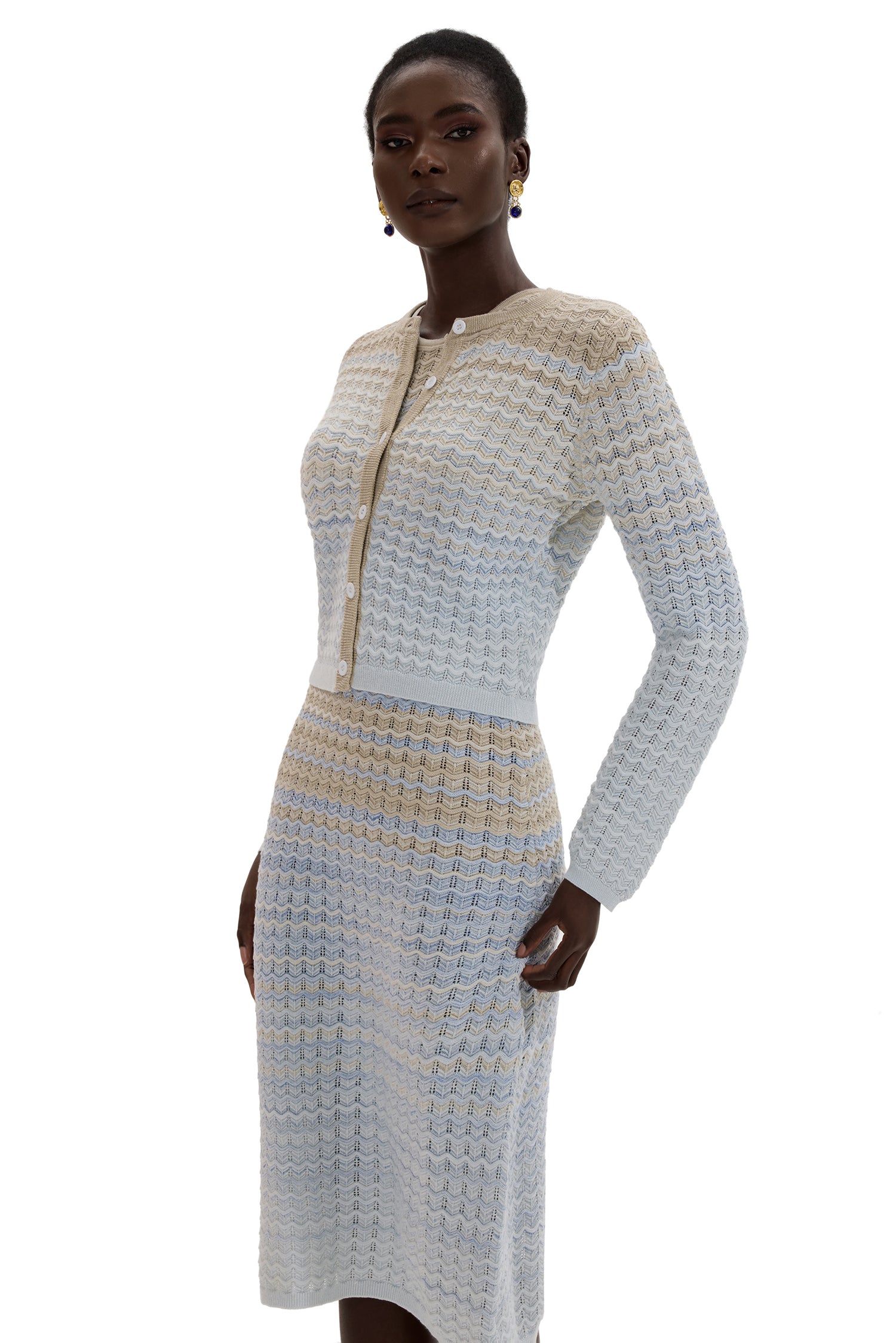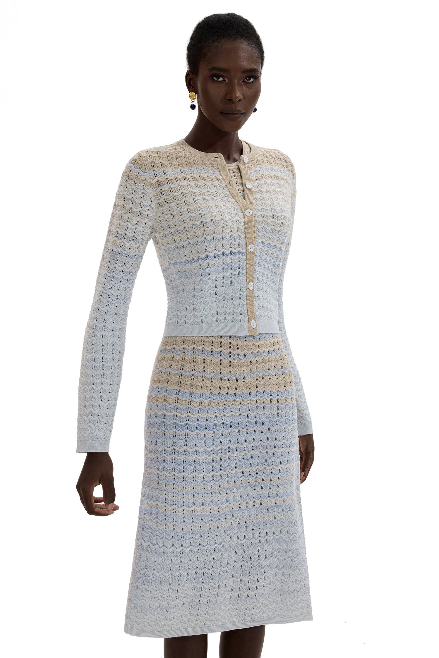 Knit Lurex Long Sleeve Coat & Sleeveless Midi Skirt Set
