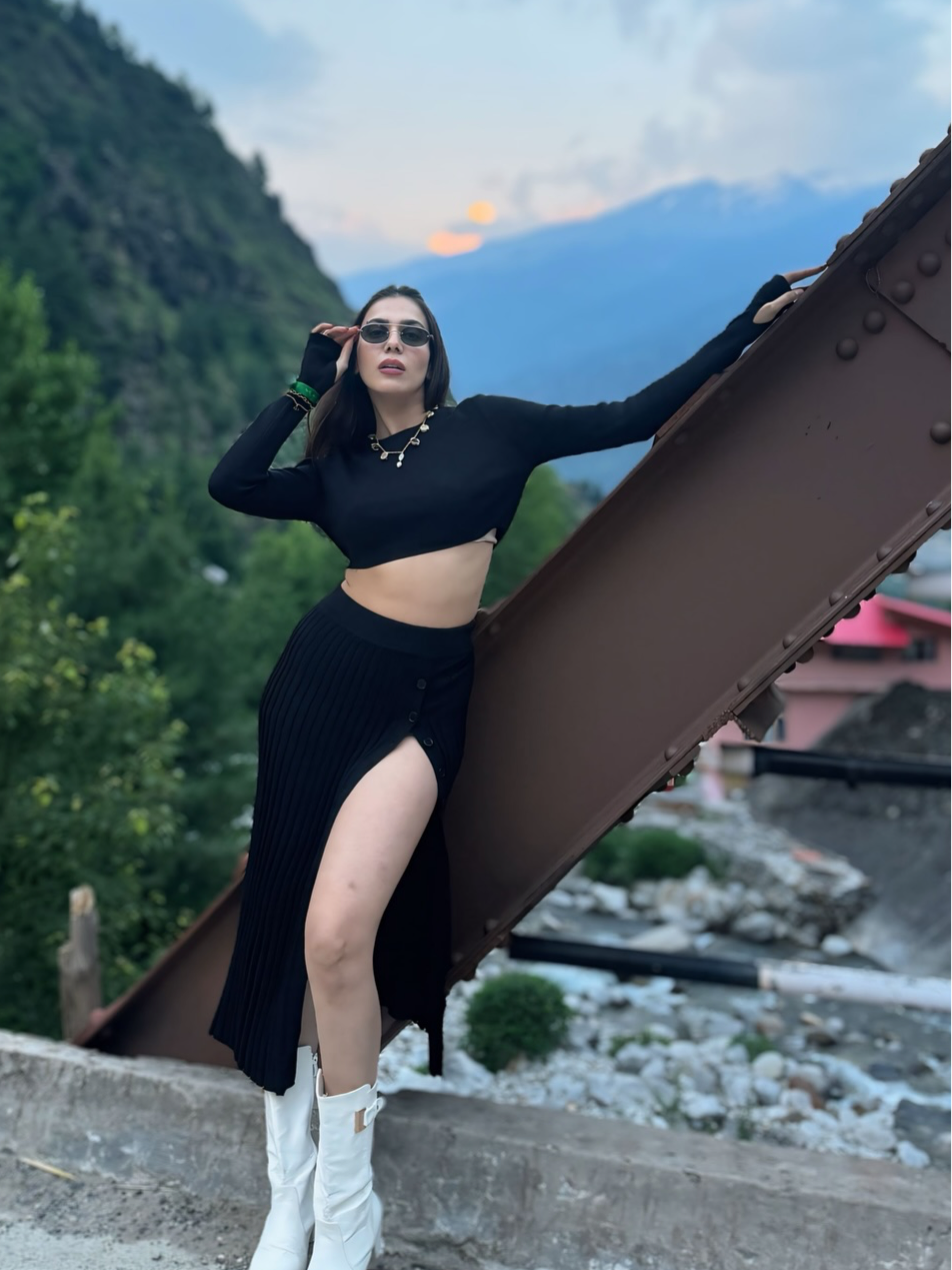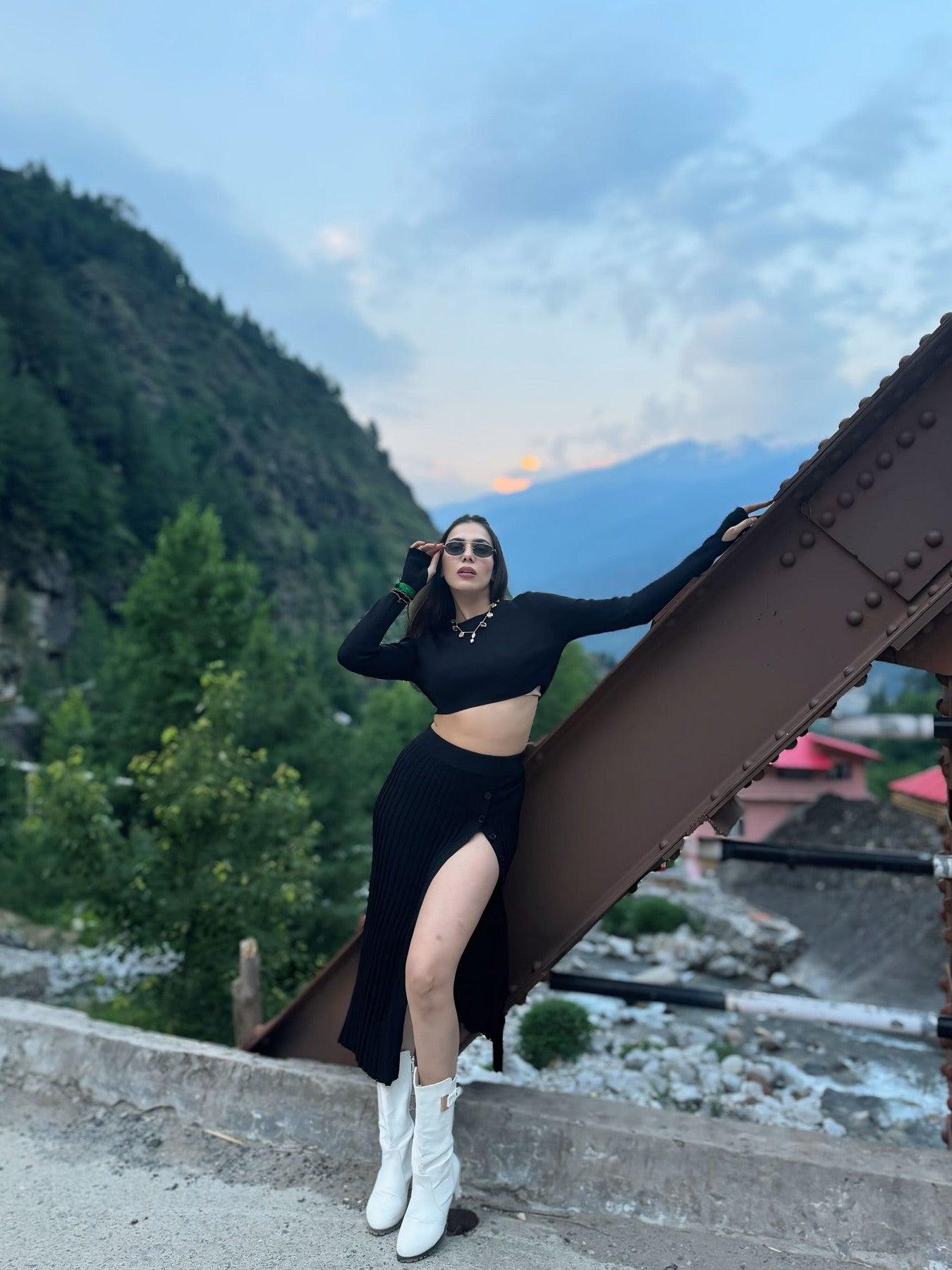 Knitted Slit Sweater Crop Top & Pleated Skirt Set