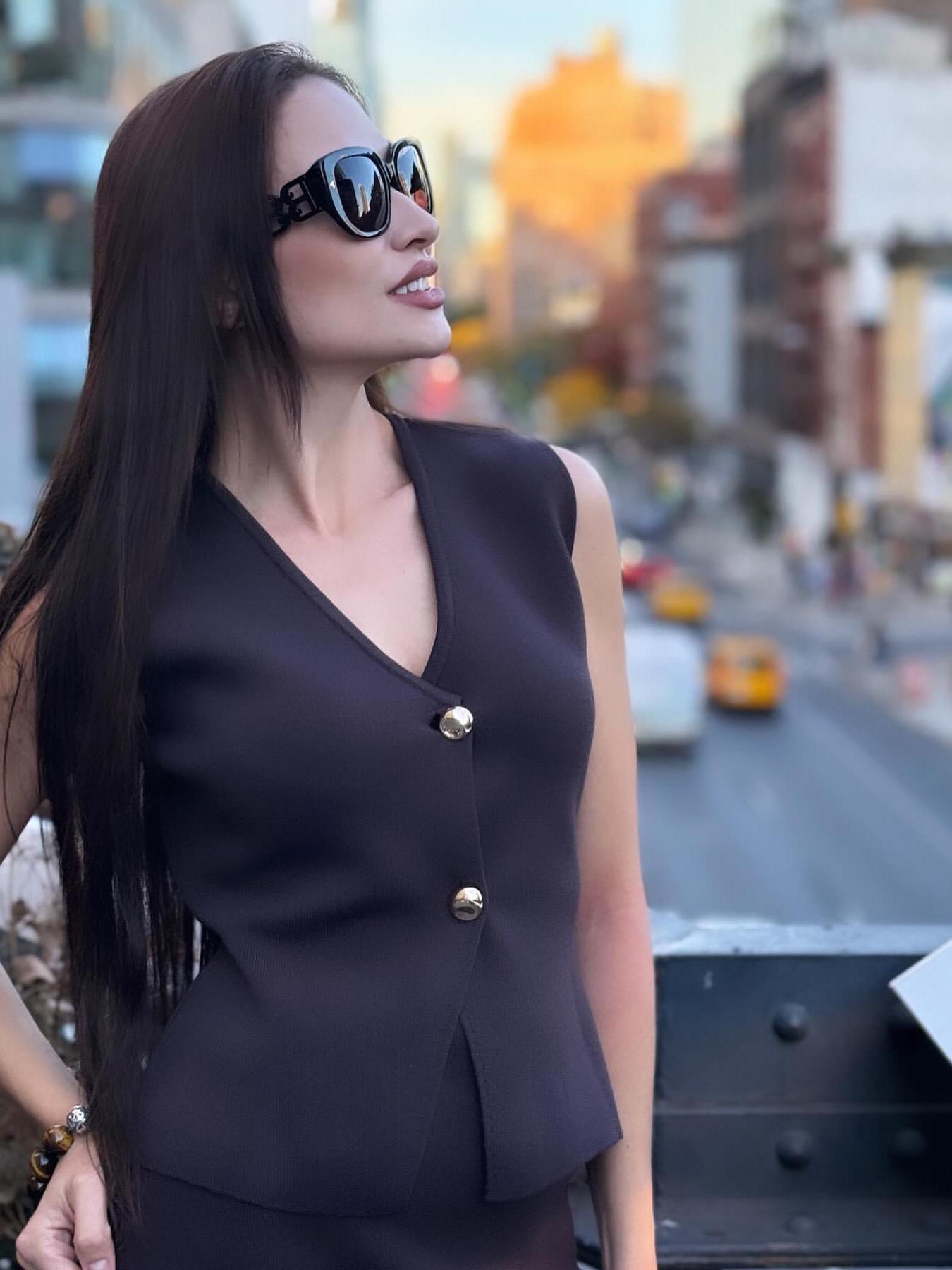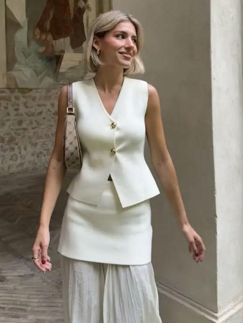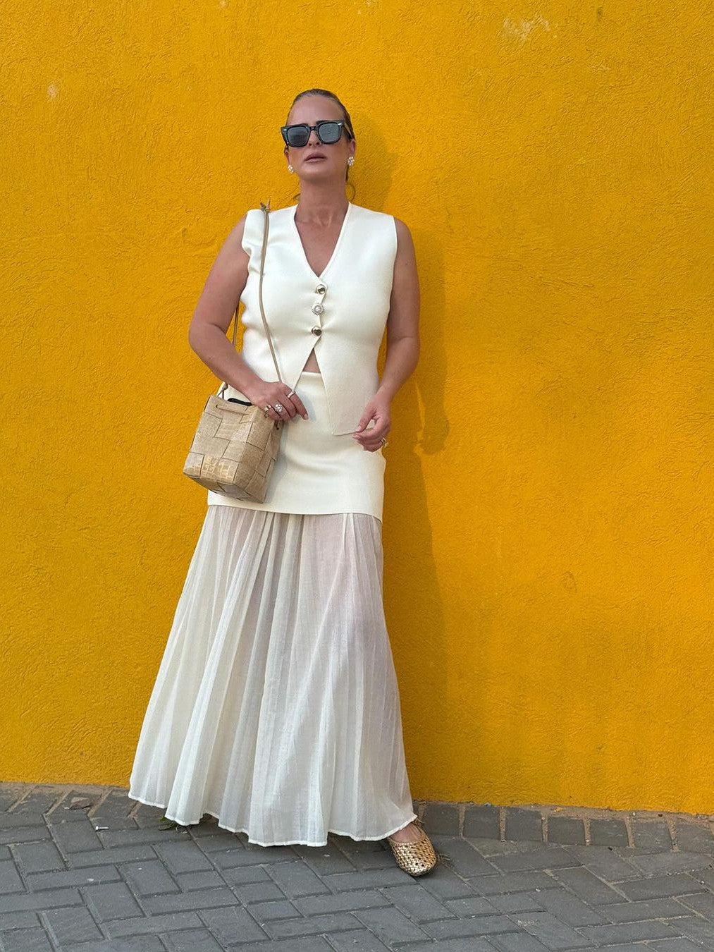Knitted Vest Coat & Pleated High Waist Skirt Coord Set