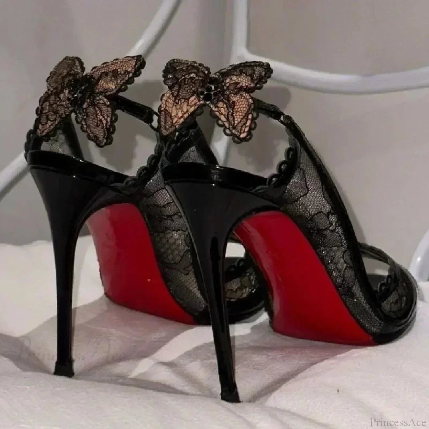 Lace Bow Gothic Slingback Sandals Tall Heel