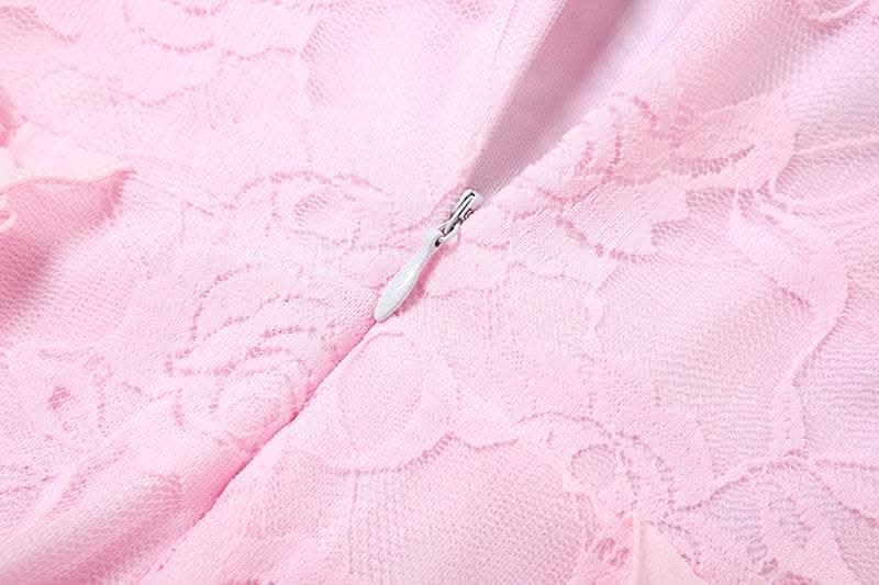 Lace contrast bowknot zip-up ruffle backless tube maxi dress-final-sale