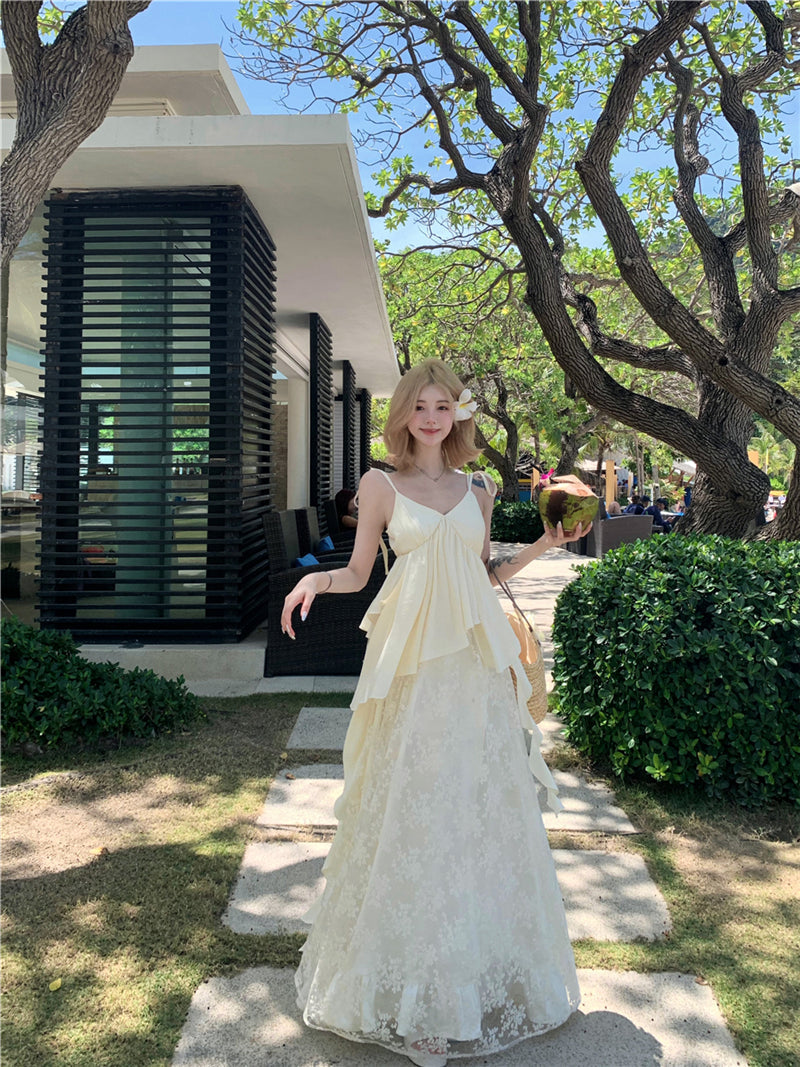 - Lace Patchwork Layered Maxi Dress Ethereal Boho Beach Gown