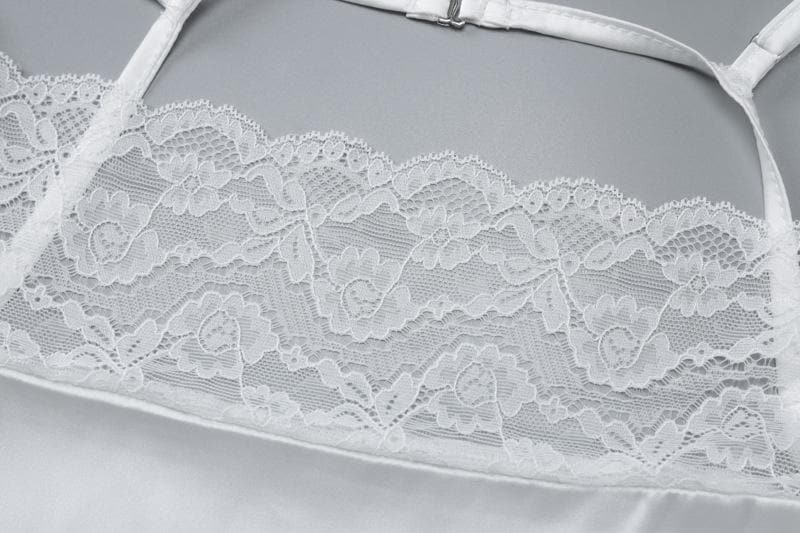Lace satin patchwork irregular high slit ruched cami maxi dress