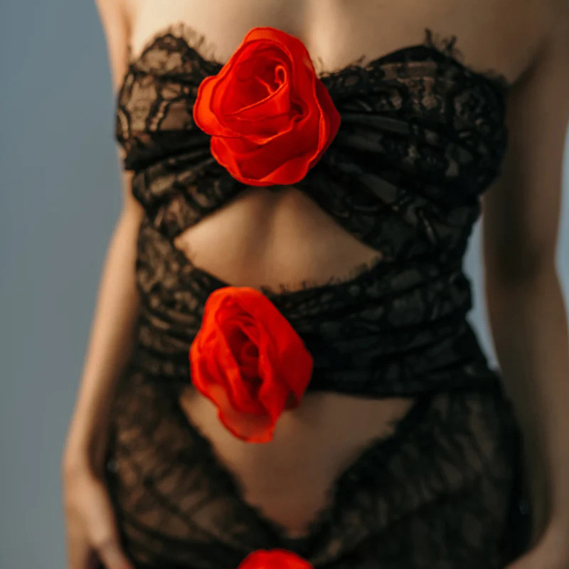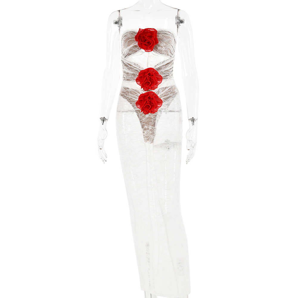 Floral Lace Rose Tube Cutout See through Maxi Dress