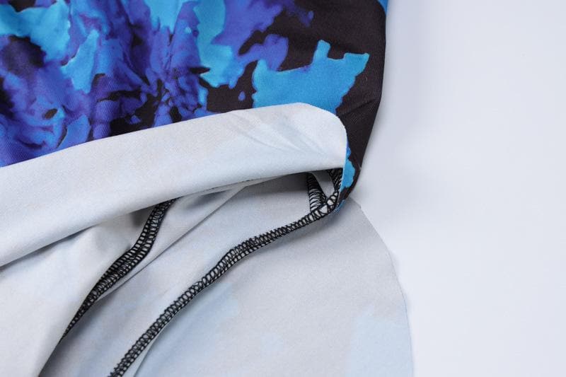 Lace up halter flower pattern irregular ruffle contrast maxi dress