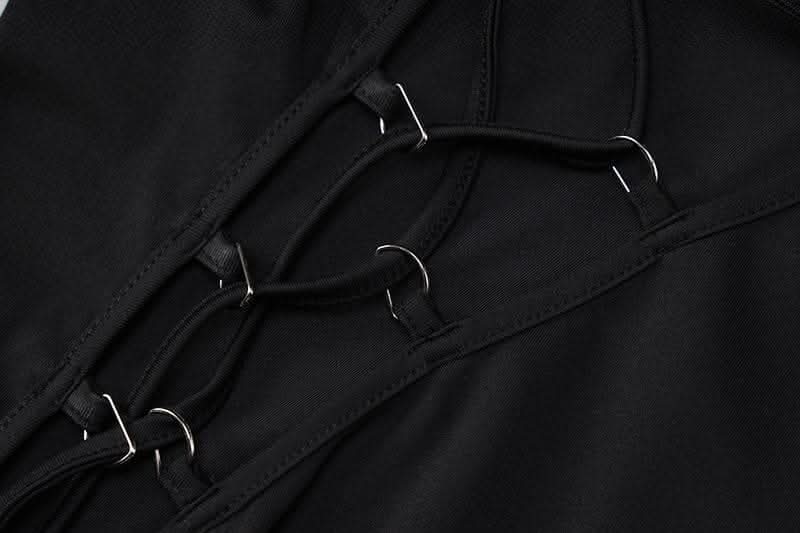 Lace up irregular long sleeve hollow out backless cut out maxi dress-final-sale