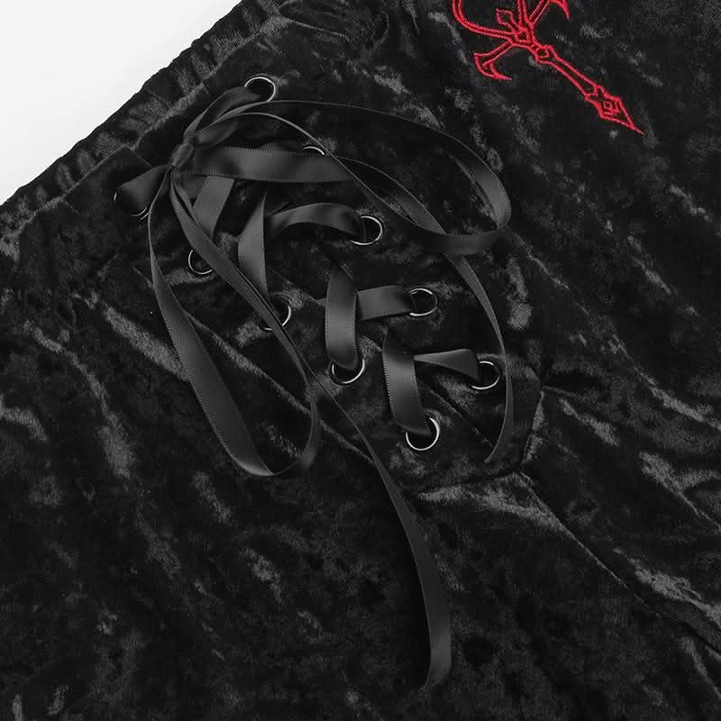 Lace up velvet embroidery medium rise pant