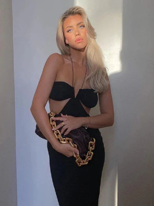 Laceup Halterneck Cutout Bodycon Slit Maxi Dress