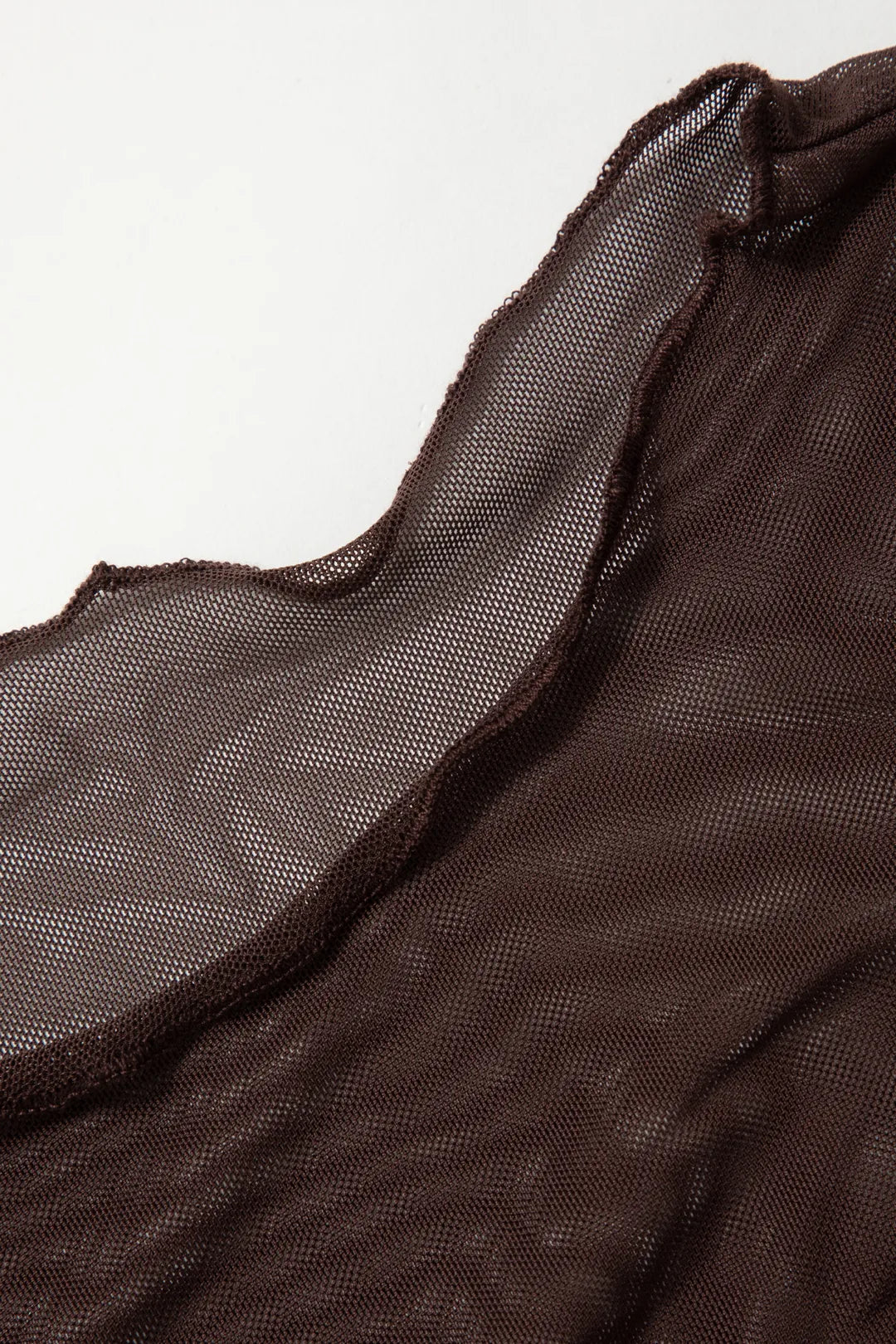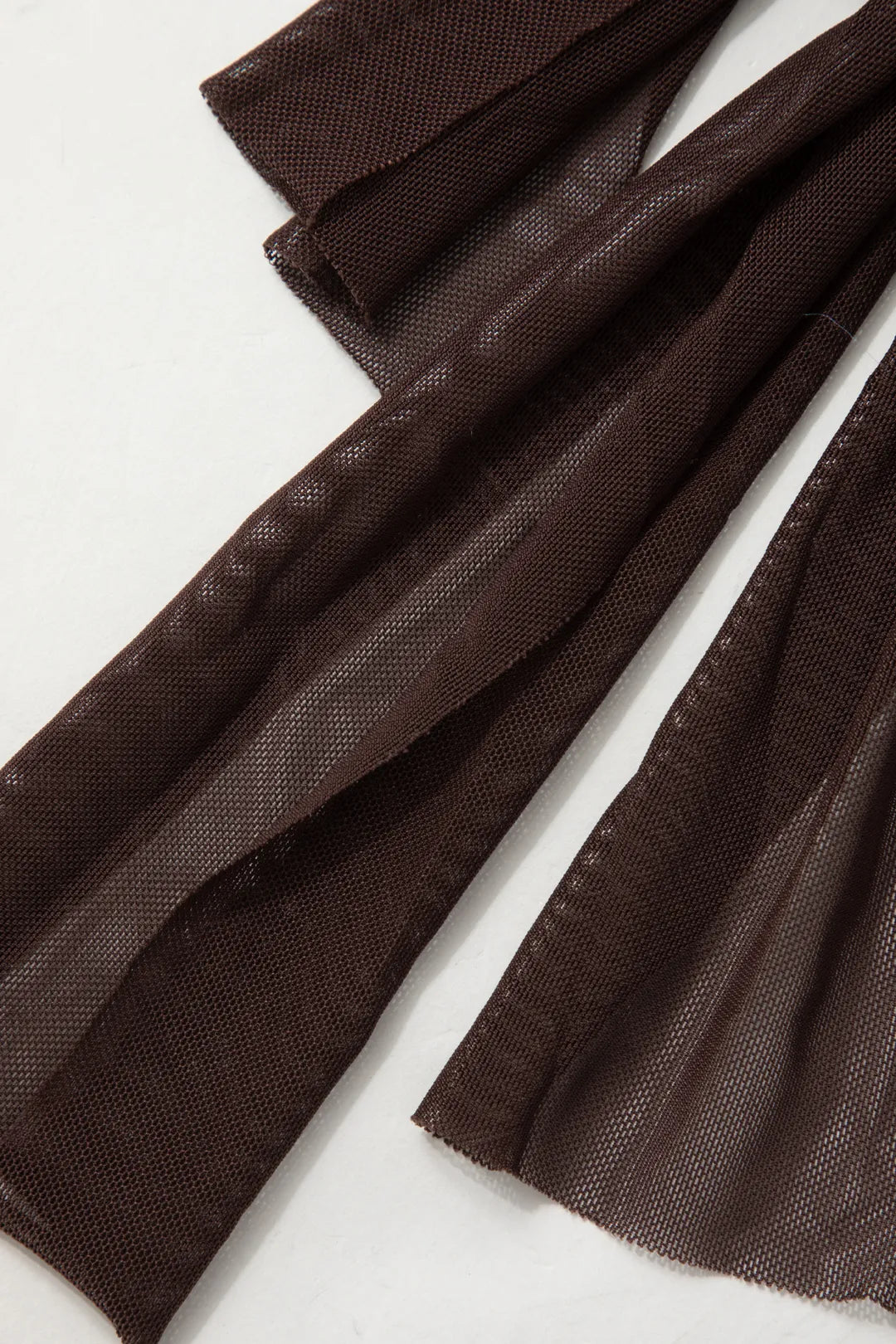 Lacey Brown Wrap Tie Ribbon Mesh Mini Dress