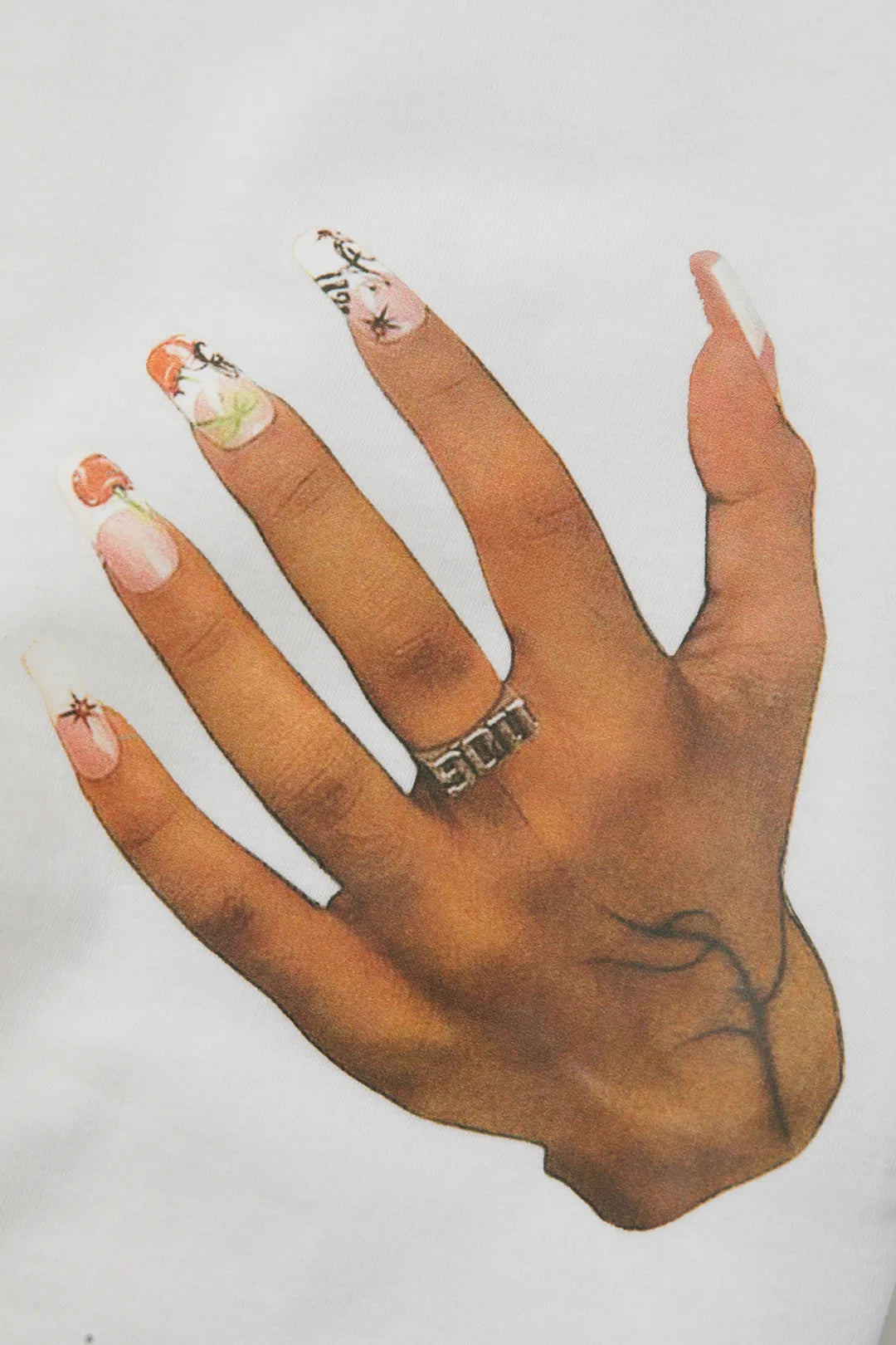Lalipa White Hands Printed Round Neck Crop T-shirt