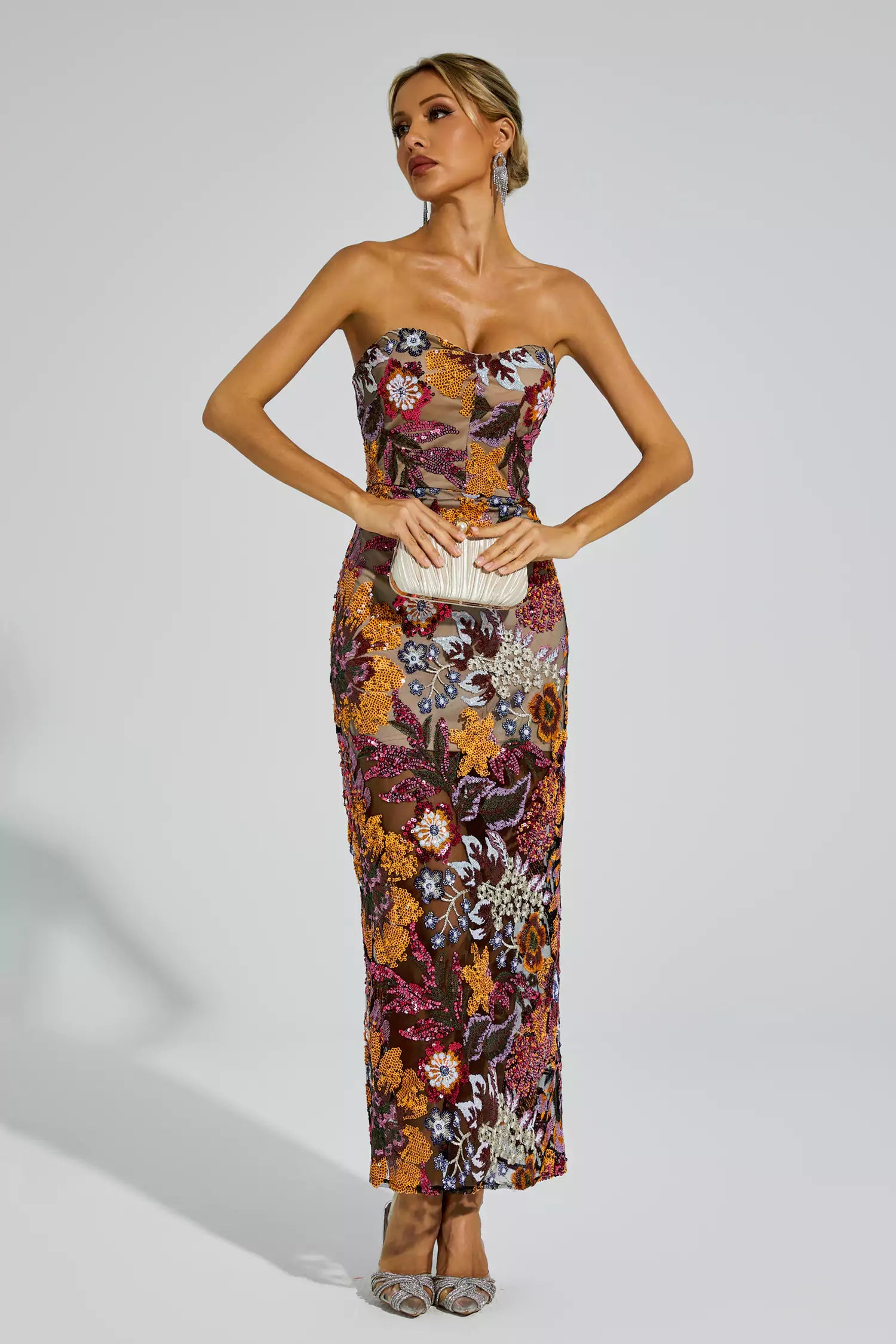 Elevate your style with the Leanna Red Flower Embroidered Maxi Dress. This stunning dress features a figure-hugging silhouette and exquisite flower embroidery. Designed in a mesmerizing shade of blue, it exudes sensuality and sophistication. With its floor-length design and sleeveless cut, it is perfect for any formal occasion. Make a statement and feel luxurious in this gorgeous attire.