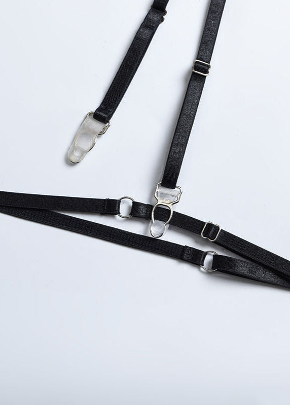 Leona is a bold three-piece lingerie set featuring intricate purple lace over sheer black mesh, structured with underwire support and sensual garter straps. The bra offers a sculpted lift with adjustable straps, while the matching panties and garter belt complete the look with flirtatious charm. Designed for both comfort and confidence, this set is perfect for special nights or adding a seductive edge to your wardrobe.