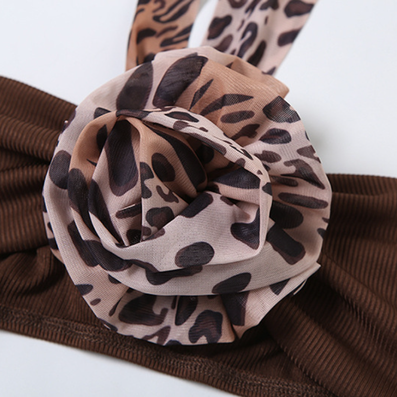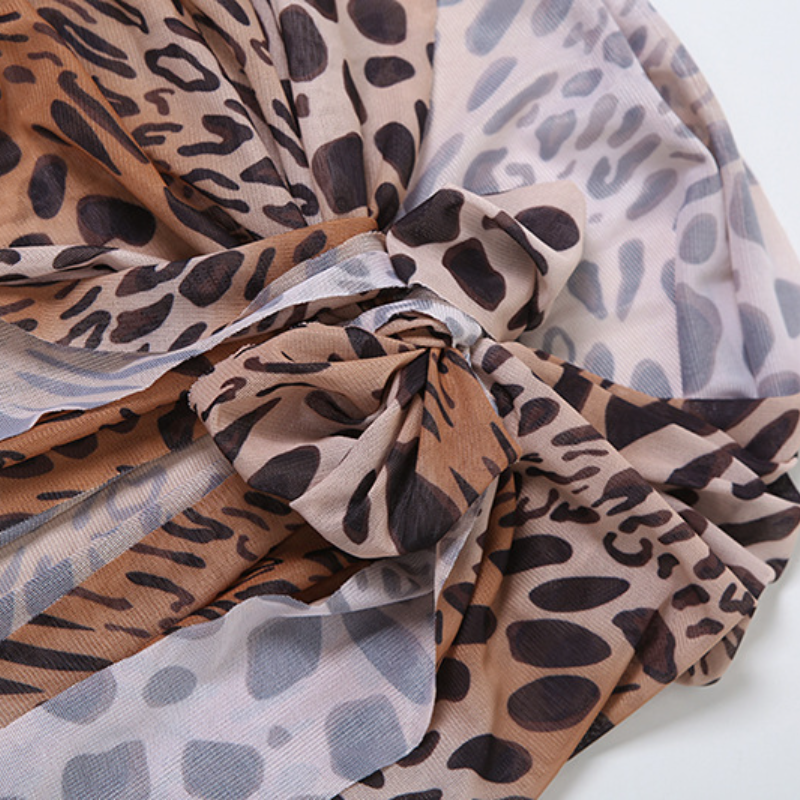 Leopard print halter self tie mesh 3 piece maxi skirt set
