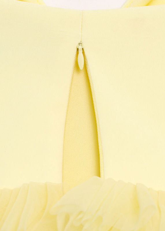 The Limoncello Ruffle Peplum Top combines playful volume with feminine charm. Designed with a deep V-neck and adjustable spaghetti straps, this sleeveless cami features a sculpted bodice and a dramatic layered tulle peplum hem. The lightweight construction makes it perfect for warm-weather styling, whether paired with denim or tailored pants. Made from soft polyester with a structured silhouette and ruched mesh accents, it brings a refined twist to casual dressing.