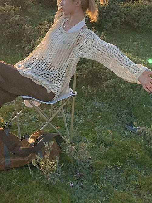 Apricot Vintage Oversized Cutout Knit Long Sleeve Top