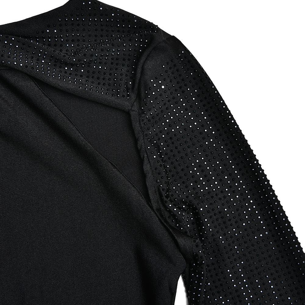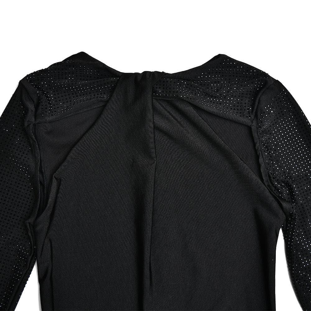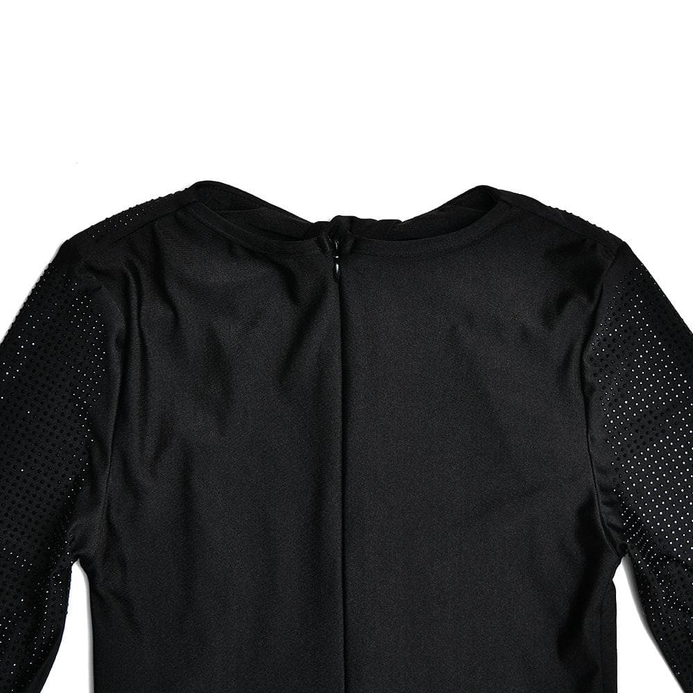 Long sleeve beaded zip-up hollow out patchwork cut out maxi dress