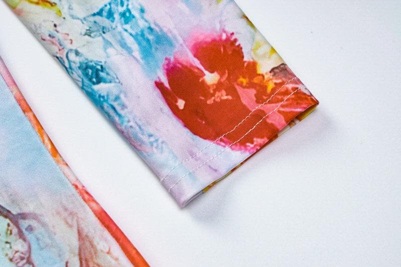 Long sleeve crewneck flower print contrast maxi dress