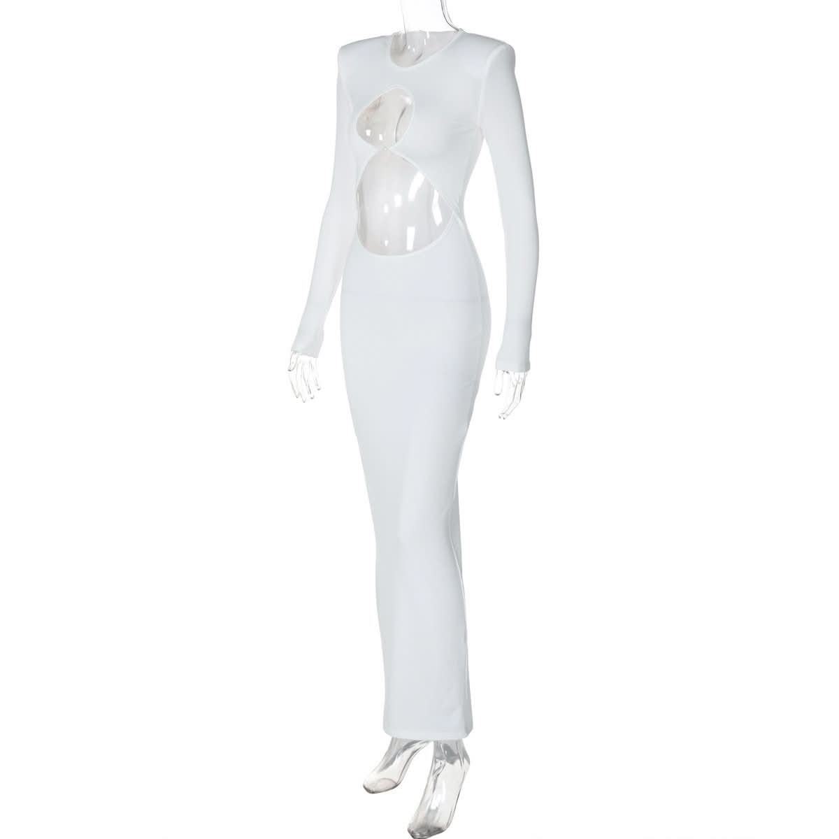 Long sleeve crewneck padded hollow out slit cut out maxi dress