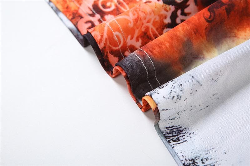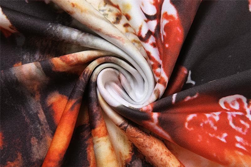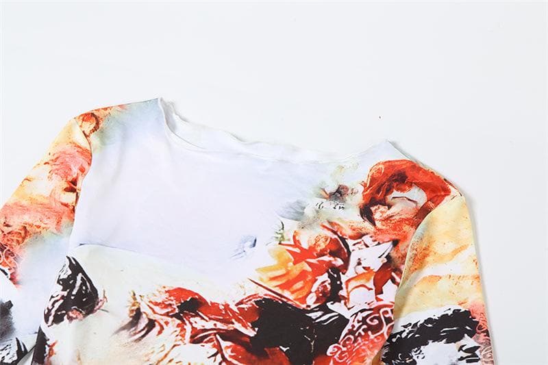 Long sleeve crewneck print ruffle contrast maxi dress
