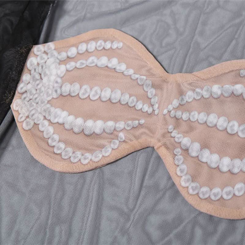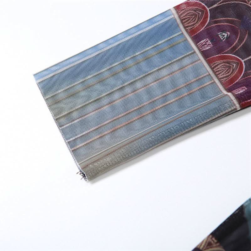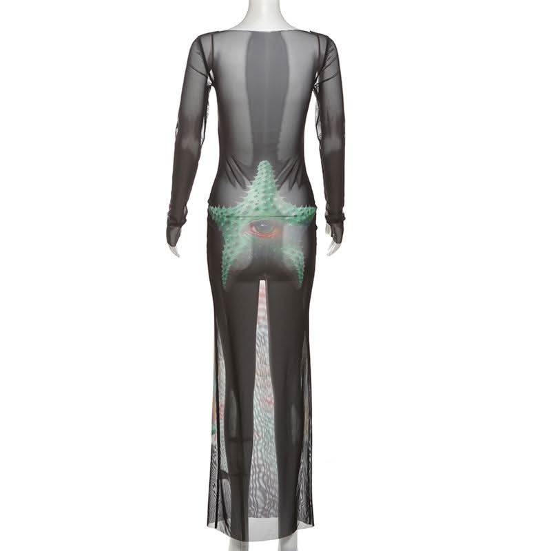 Long sleeve mesh hollow out print see through cut out maxi dress