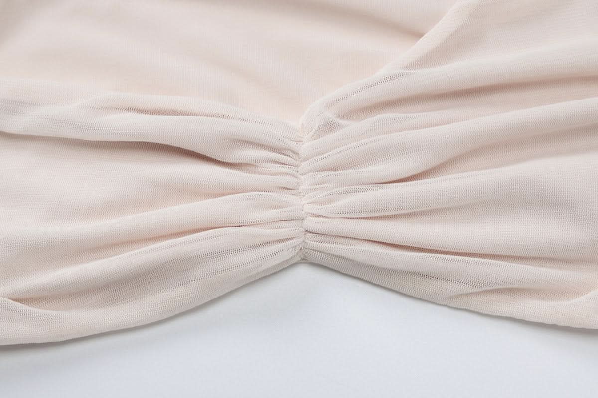 Long sleeve mesh patchwork ruched maxi skirt set-final-sale