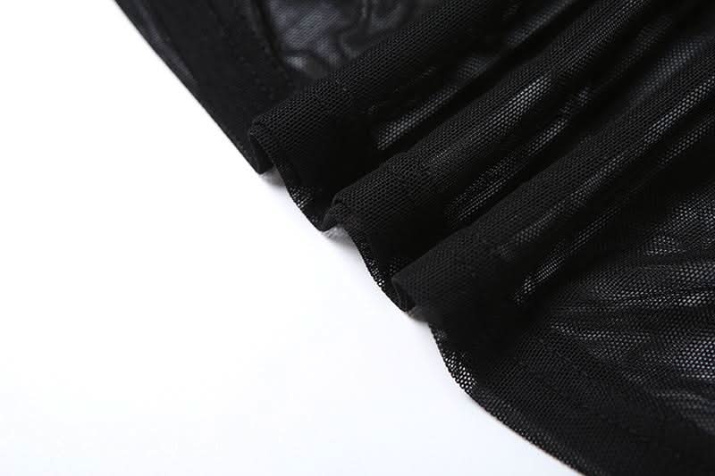 Long sleeve mesh see through ruched maxi dress-final-sale