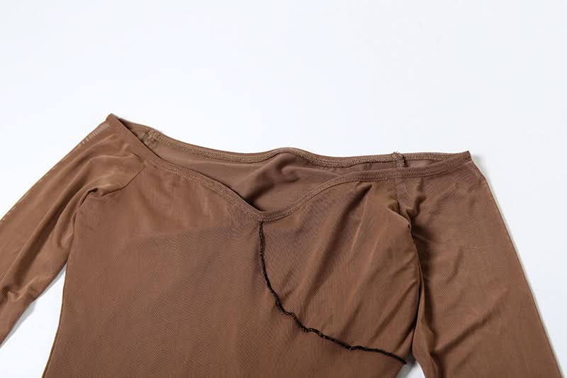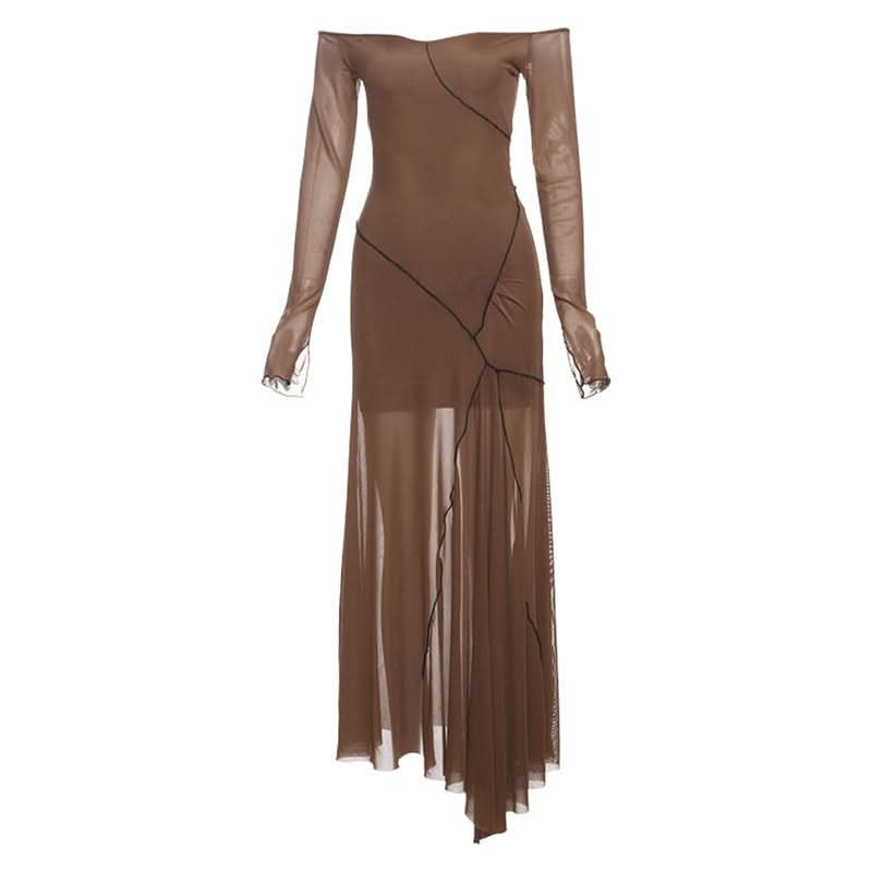 Long sleeve off shoulder mesh ruffle maxi dress