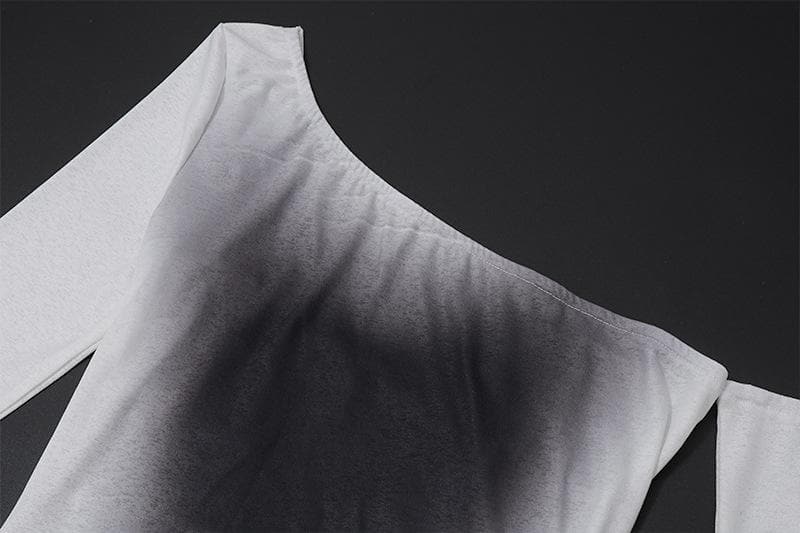 Long sleeve one shoulder ruched palm print gradient slit maxi dress- Final Sale