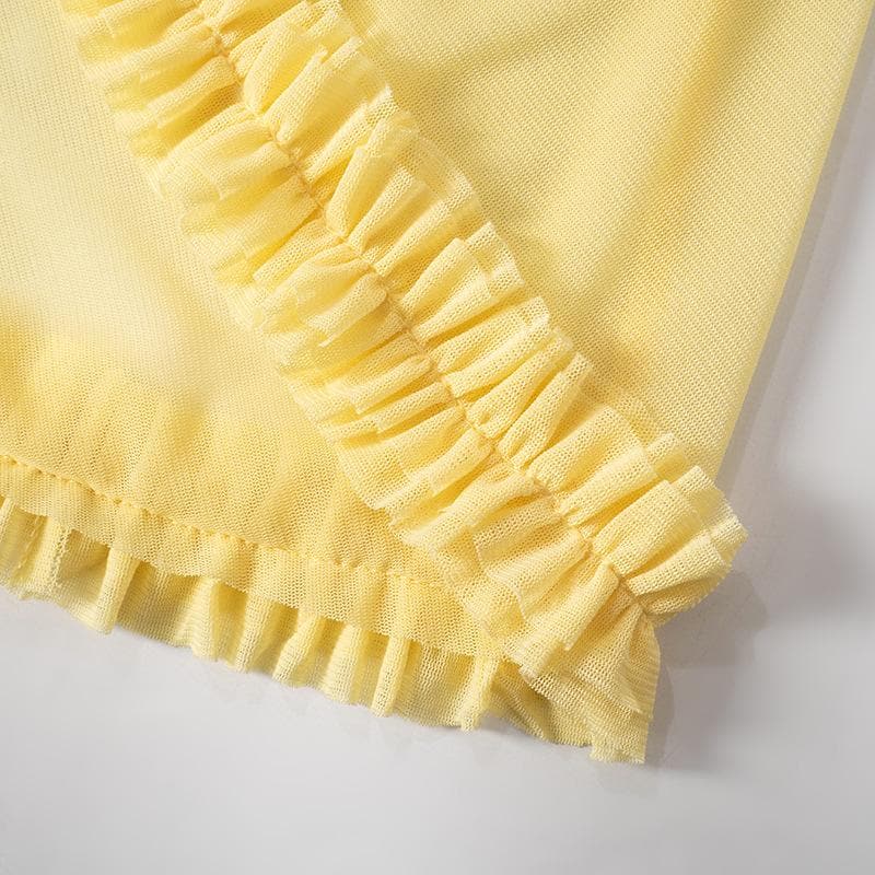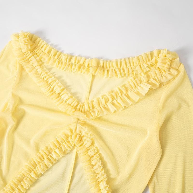 Long sleeve ruffle hollow out v neck sheer mesh cut out maxi dress