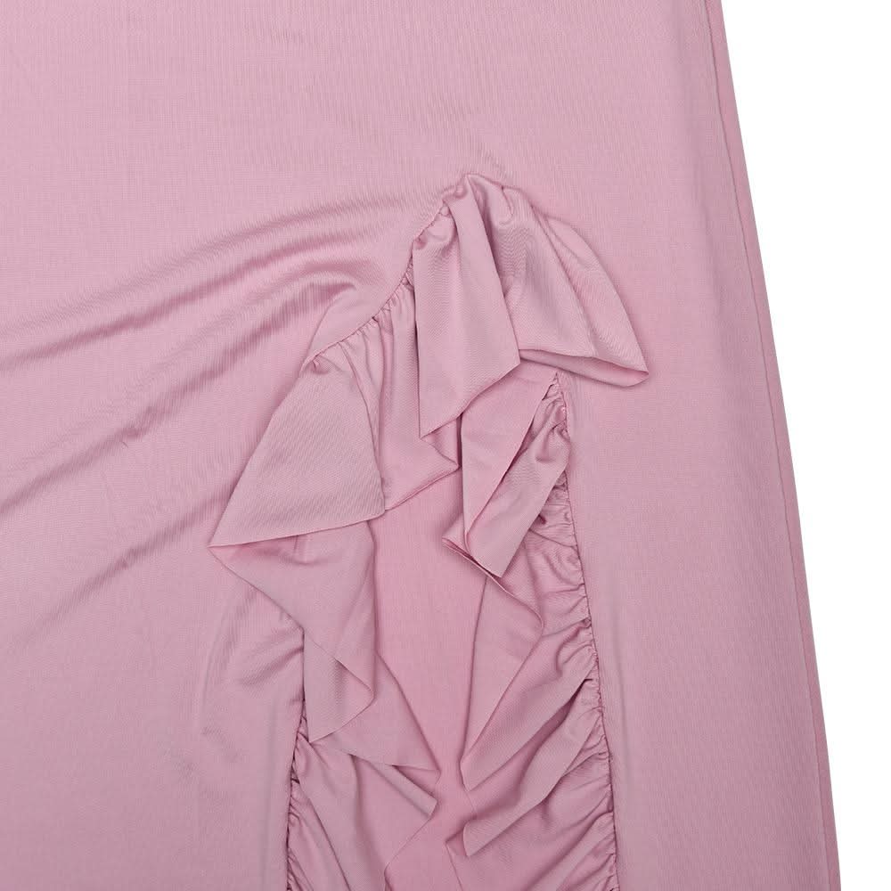 Long sleeve ruffle slit lace hem shrug 2 piece maxi dress