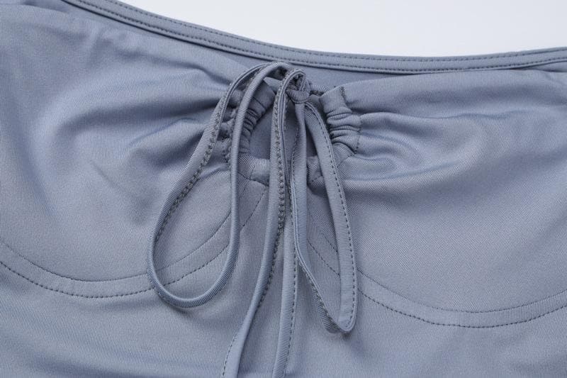Long sleeve slit self tie drawstring backless solid maxi dress