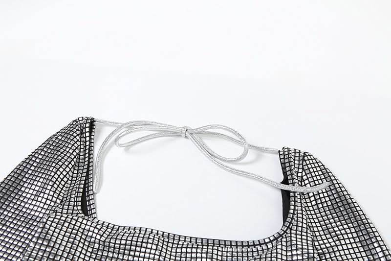 Long sleeve square neck self tie plaid maxi skirt set