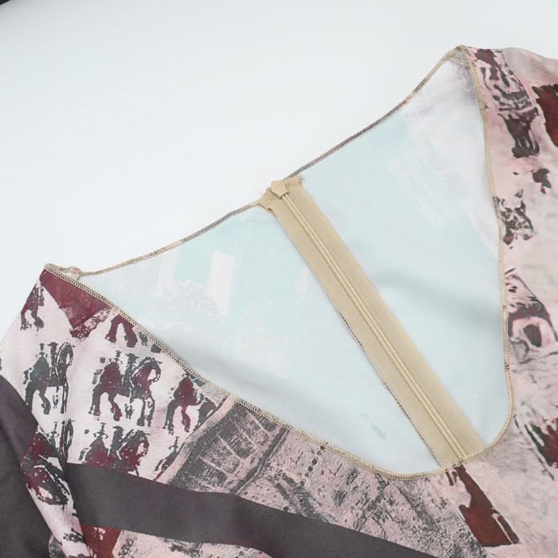 Long sleeve v neck contrast zip-up maxi dress