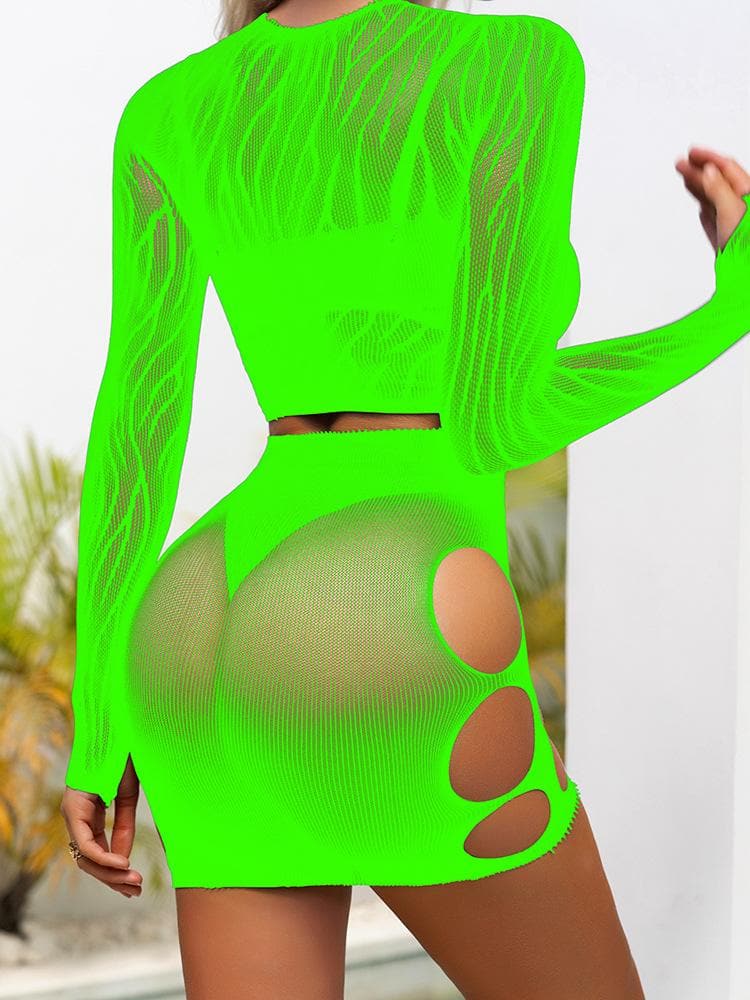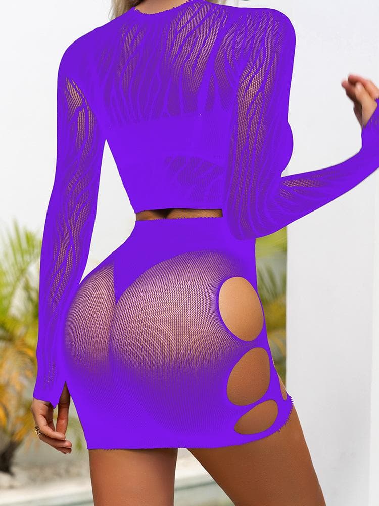 Long sleeve zebra sheer mesh mini skirt set