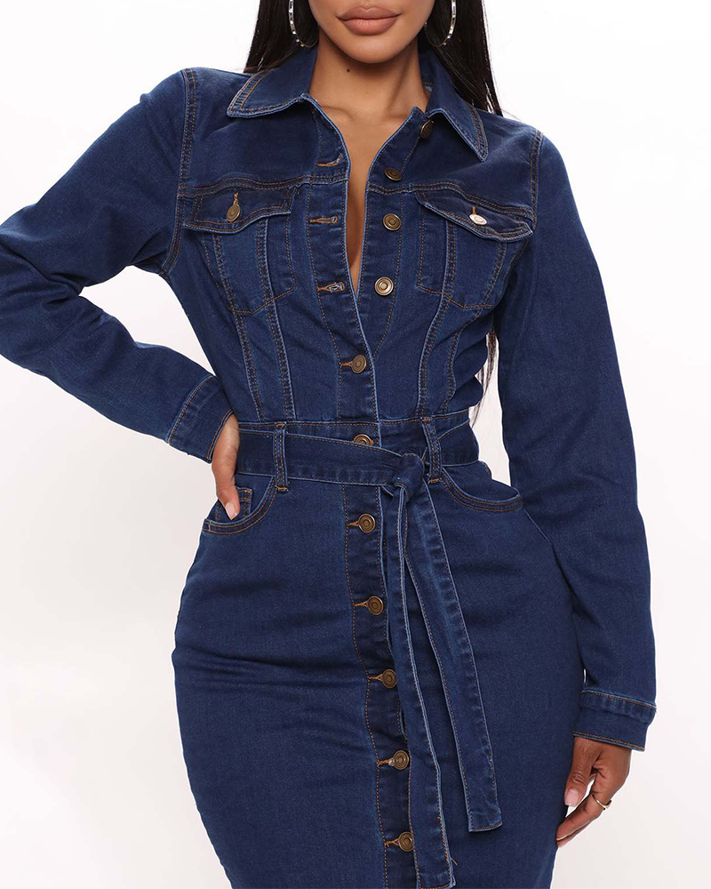 Long-Sleeved Slim Denim Dress