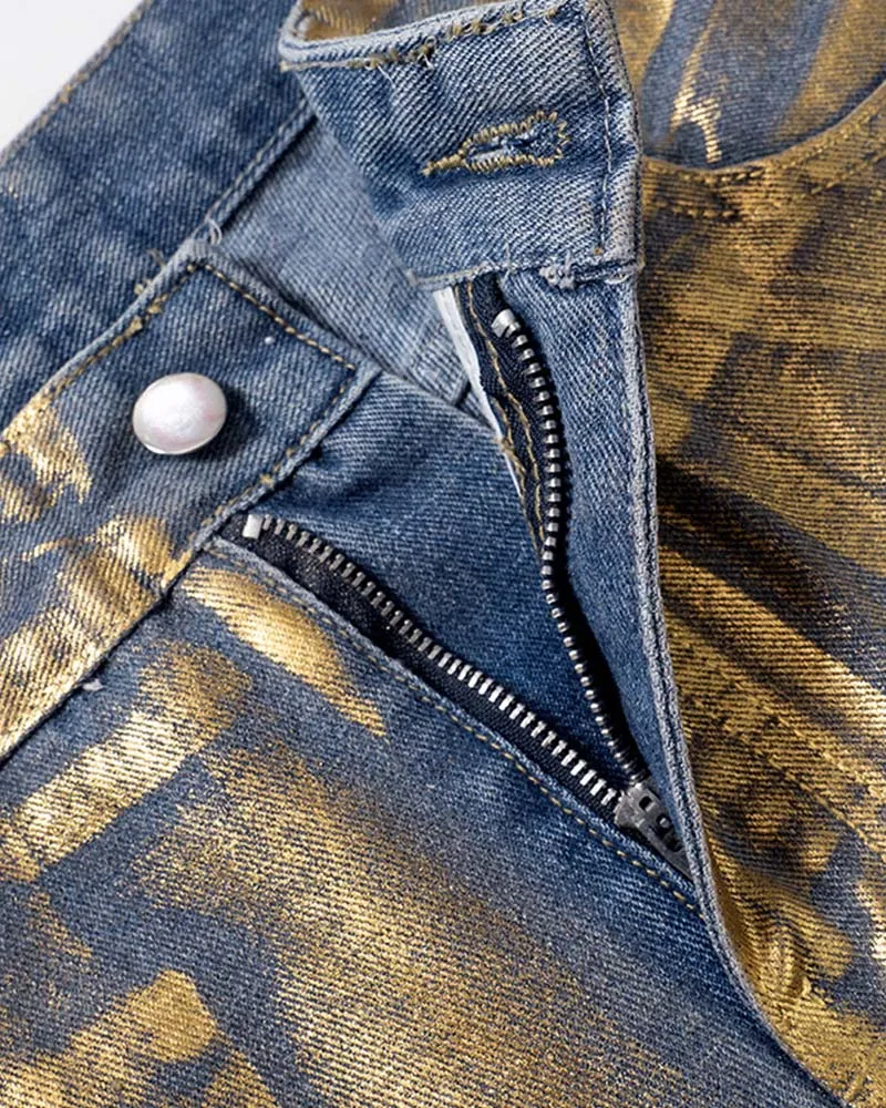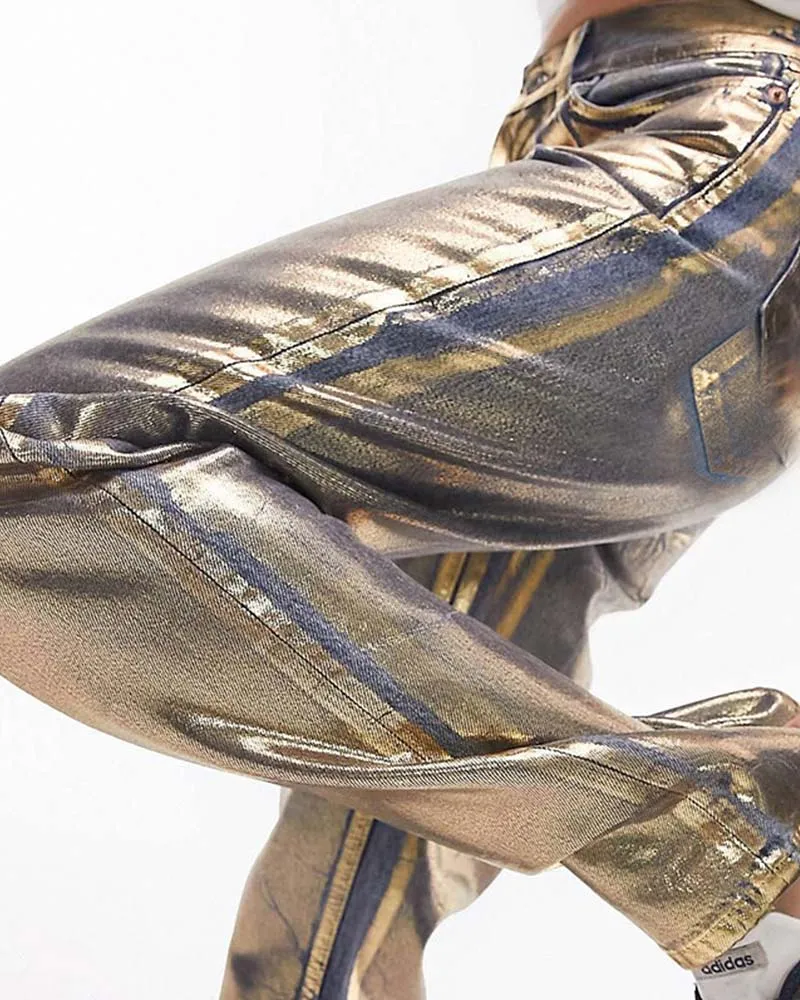 Versatile Styling Options: Elevate your wardrobe with the versatility of our Loose Metal Jeans. Whether you prefer a casual look or want to make a bold fashion statement, these jeans offer endless styling possibilities. Pair them with a classic white tee for a laid-back vibe, or throw on a leather jacket to channel an edgier look. The metallic accents on these jeans effortlessly catch the light, adding a touch of glam that makes them suitable for both daytime and nighttime wear.