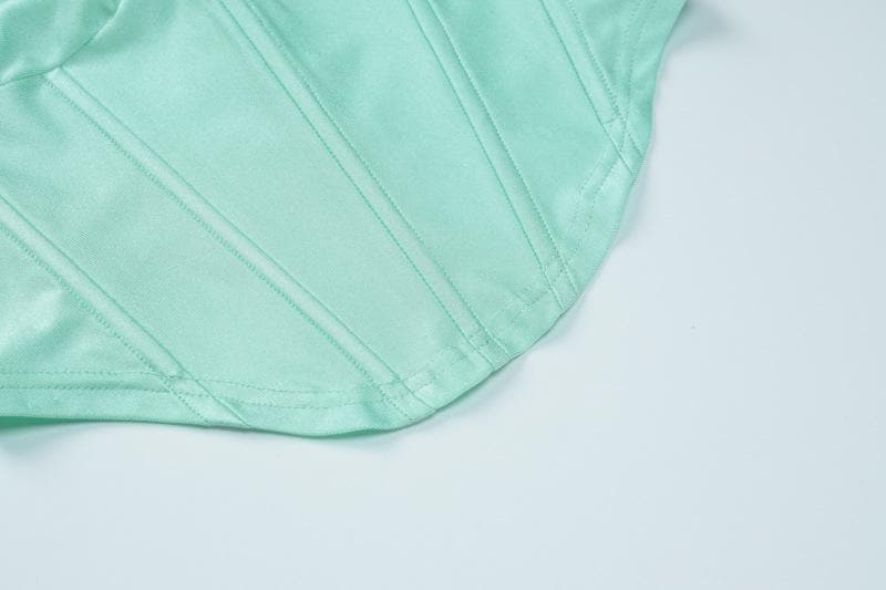 Low cut solid corset slit ruched backless cami maxi dress set