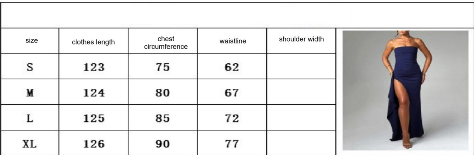 With a strapless neckline and ruched detailing, this show stopping look has a thigh high split and drape ruffle to one side.