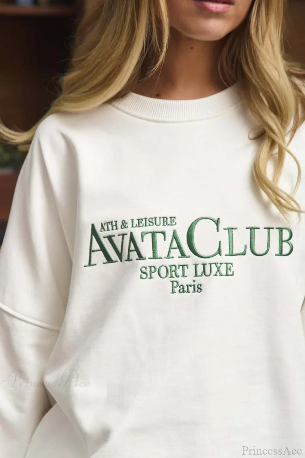 mbroidered Letter Crew Neck Oversized Sweatshirt