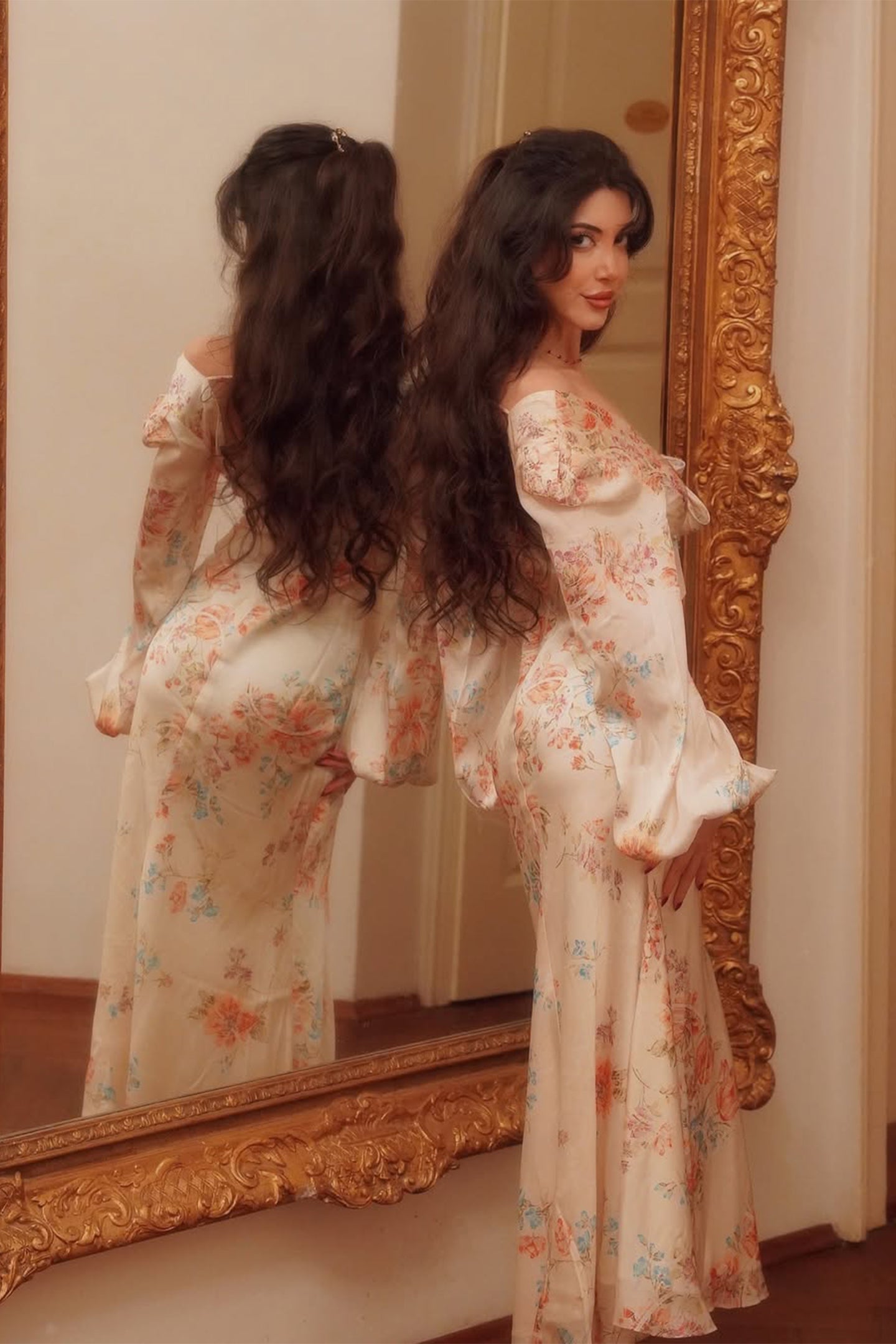 Melissa Floral Print V-Neck Satin Maxi Dress