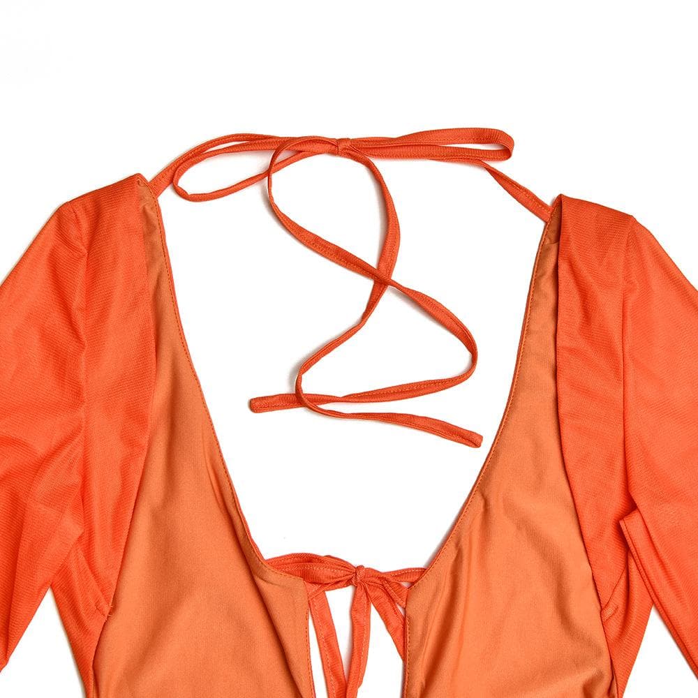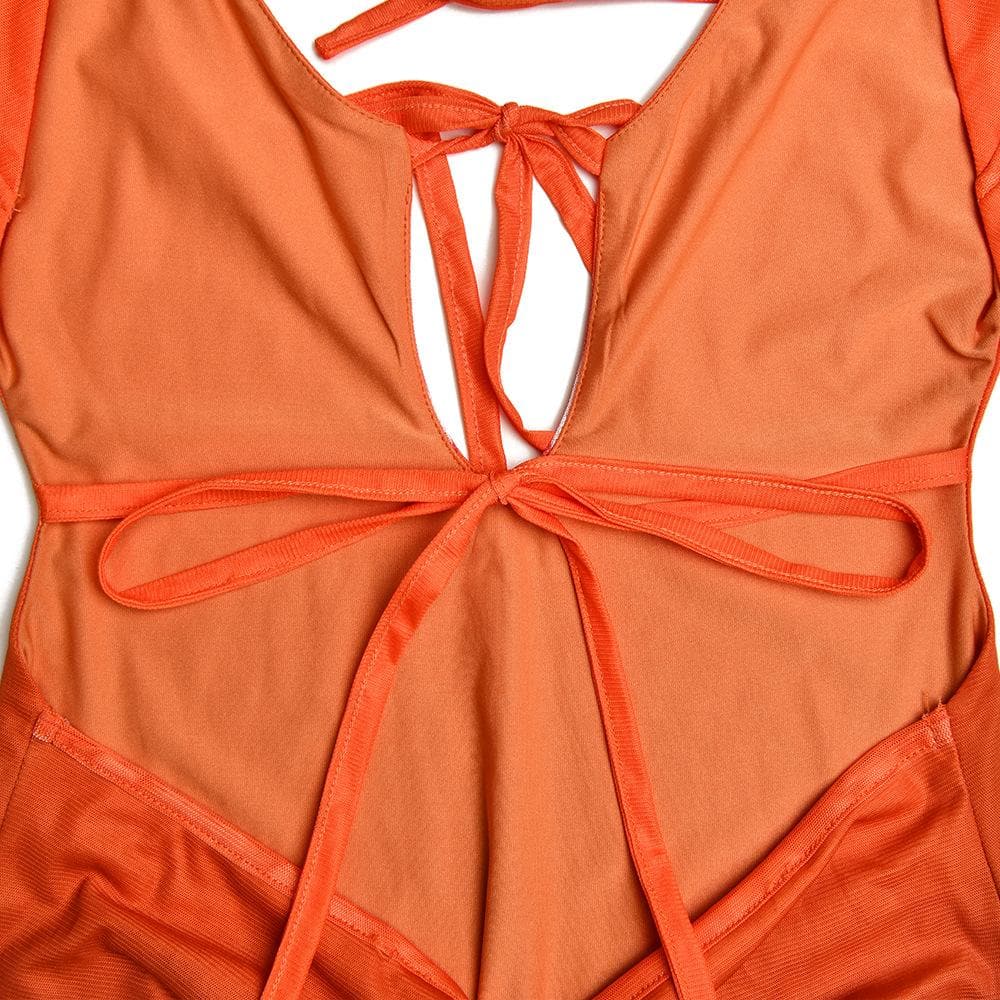 Mesh gradient long sleeve self tie backless slit maxi dress