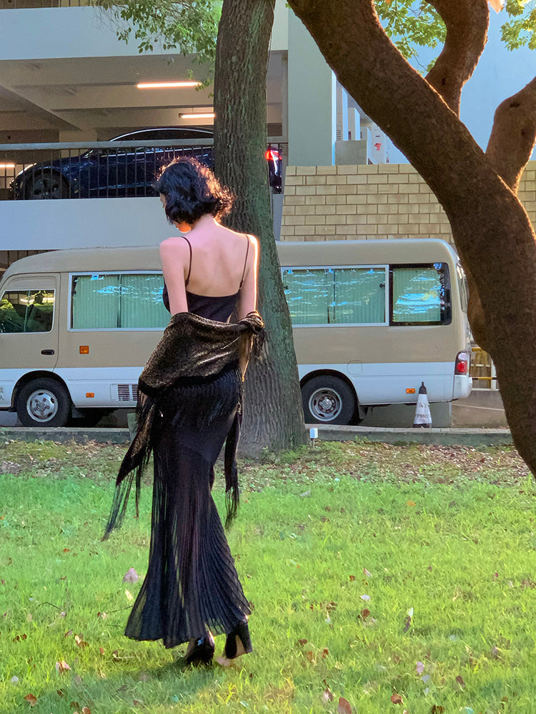 - Mesh Pleated Mermaid Maxi Dress - Slim-Fit Sheer Tulle Slip Gown