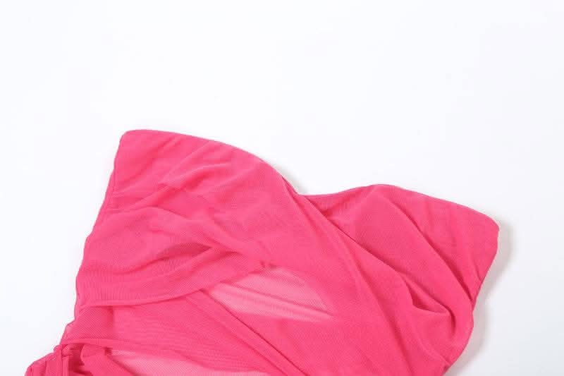 Mesh ruched hollow out see through tube cut out maxi dress-final-sale