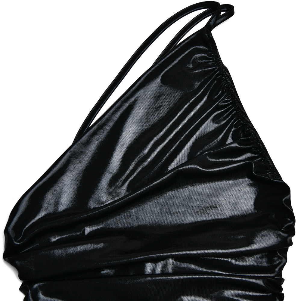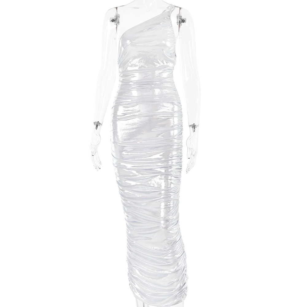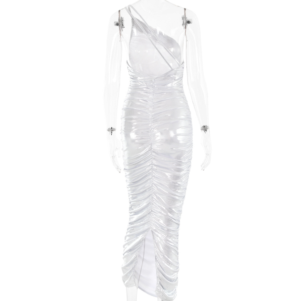 Metallic Coated One Shoulder Sheath Knitted Coated Dress