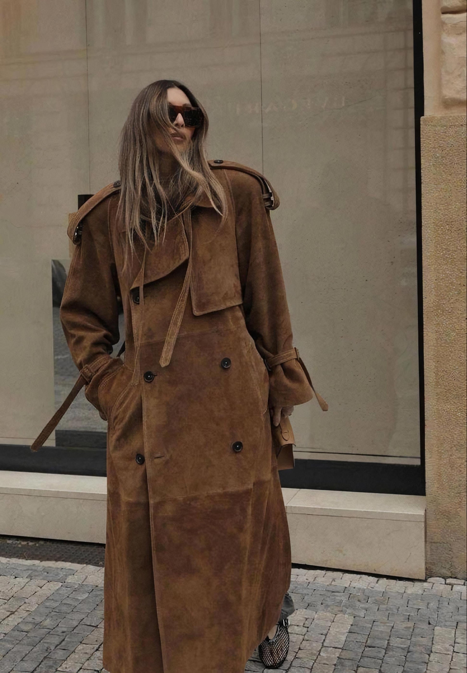 Introducing the Micah Coat - the perfect addition to your fall wardrobe. Crafted with high-quality faux leather, this double-breasted coat features a stylish lapel and an oversized, figure-flattering silhouette. Complete with a belt for added style and comfort, this coat is a must-have for any fashion-forward woman. Upgrade your outerwear game with the Micah Coat.