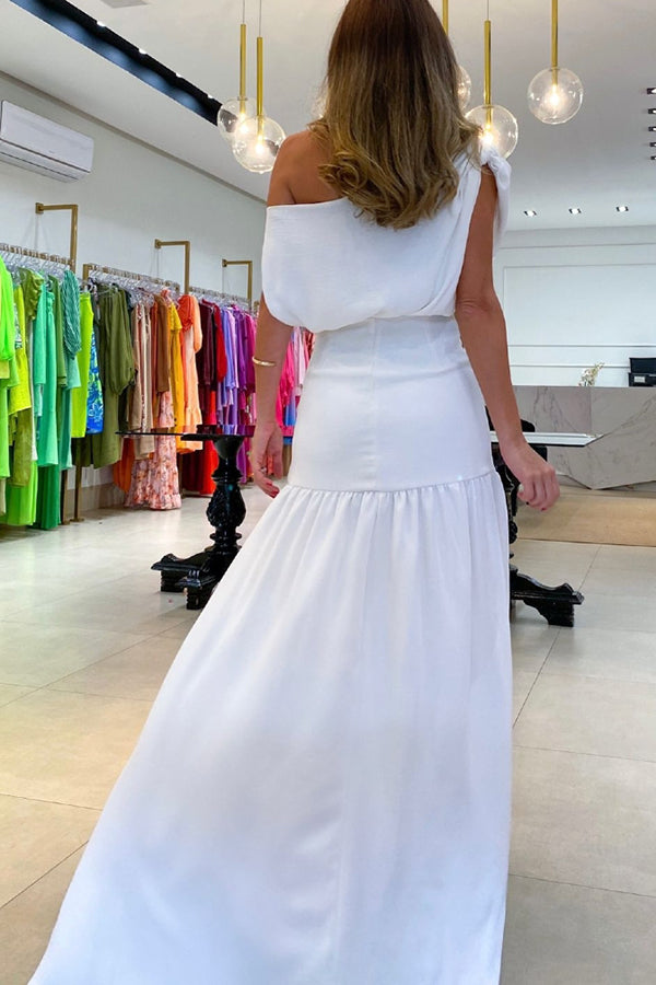 Midnight Chances One Shoulder Ruched Detail Slit Maxi Dress