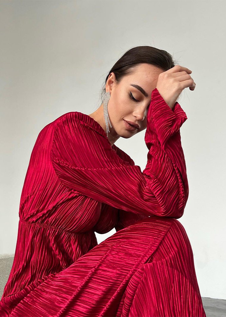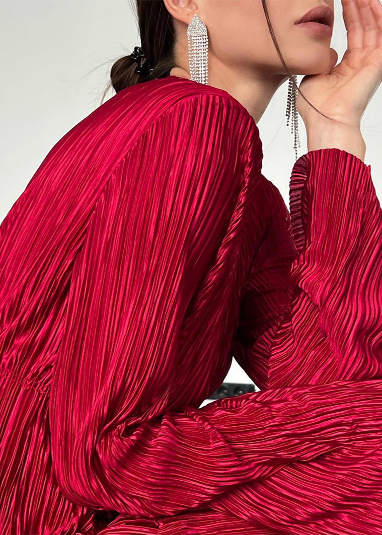 The Midnight Elegance Backless Pleated Maxi Dress exudes sophistication with its timeless design and modern details. Crafted from premium pleated fabric, this maxi dress features a high neckline and long sleeves for understated allure. The dramatic open-back cutout with delicate strap detailing adds a bold, contemporary twist. Perfect for evening events, galas, or special occasions, this dress ensures a graceful silhouette and lasting comfort.