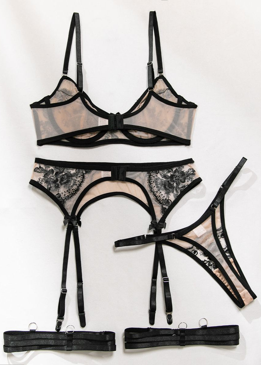 Mireille – Floral Embroidered Lingerie & Garter Belt Set