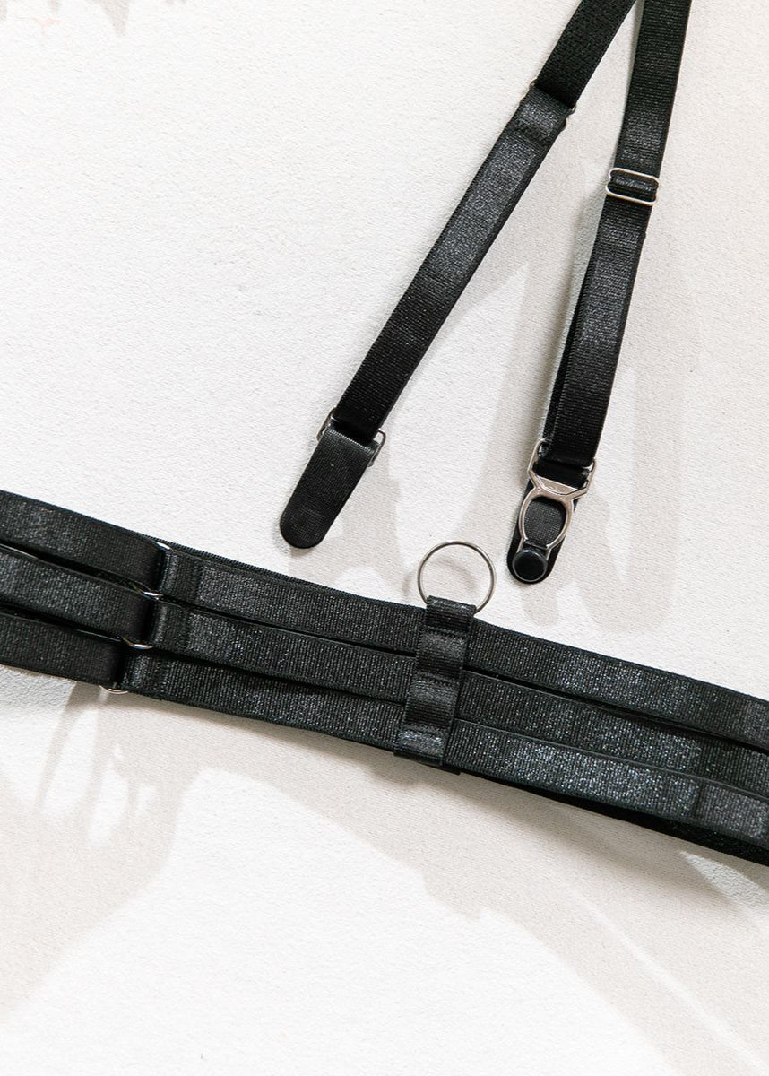 Mireille – Floral Embroidered Lingerie & Garter Belt Set features intricate floral embroidery and a modern silhouette that’s designed for a comfortable, adjustable fit. The unlined underwire bra provides gentle shaping with sheer mesh panels adorned with delicate floral accents. The high-rise garter belt adds a sensual touch with adjustable straps that pair beautifully with stockings, while the matching panty is cut to flatter.